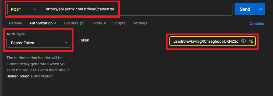 Atenção: O lead enviado na requisição cai em uma fila e será cadastrado no Pcontrol em alguns minutos. O cadastro não é instantâneo a partir do envio da requisição.