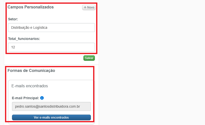 12- Descendo esta página, na coluna à esquerda, também é possível ver as informações do e-mail cadastrado e de campos personalizados, caso sejam utilizados: