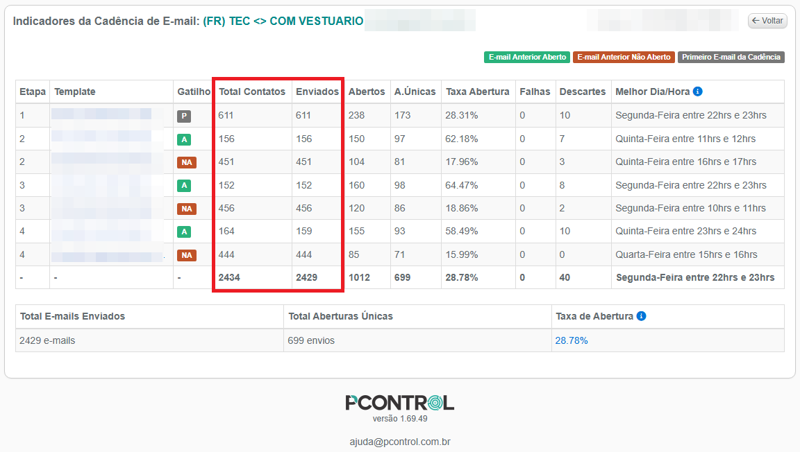 3- Nessa tela é possível conferir, etapa por etapa, quantos e-mails foram disparados e comparar com o total de leads entregues pelo robô.